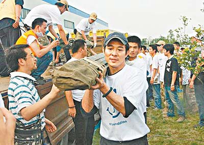 李連杰強(qiáng)忍淚水投入救災(zāi) 親自搬帳篷等物資(圖)