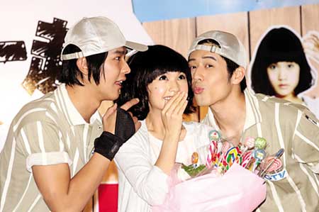 在新劇中飾演“宅女”的楊丞琳表示,她是首次飾演這樣內(nèi)斂的角色,也是一種挑戰(zhàn)。劇中,她將與飾演偶像明星的汪東城以及飾演青梅竹馬好友的胡宇崴有一段錯(cuò)綜復(fù)雜的三角戀情。問到楊丞琳對兩個(gè)男生有什么印象,無厘頭的她竟回答:“我覺得他們一直在對我用力!彼嘎,第一次見到大東時(shí),她主動(dòng)找他攀談,他卻一臉酷樣不理人。對此沒印象的大東連忙澄清:“可能是我在團(tuán)里被要求耍酷,不能講話吧。”大東說他媽媽很欣賞楊丞琳:“我跟她同樣都是一出道就要幫家里背債,她已還完債并買了新房子,現(xiàn)在我的房貸也快還清了,正在找新房子!睏钬┝章犕犟R上說:“我家那邊還有空屋,歡迎來當(dāng)我的鄰居!