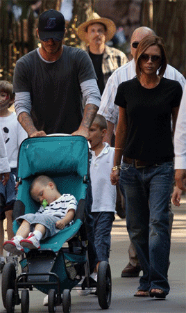 中新網(wǎng)6月13日電 據(jù)英國(guó)《每日郵報(bào)》報(bào)道,美國(guó)當(dāng)?shù)貢r(shí)間星期三下午,貝克漢姆和維多利亞帶著三個(gè)兒子,大游迪士尼樂(lè)園,F(xiàn)場(chǎng)所見(jiàn),他們的大兒子布魯克林與二兒子羅密歐已漸有明星架勢(shì),小兒子克魯茲則獨(dú)享寶寶車(chē),睡得十分香甜。