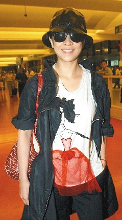 據(jù)臺灣“聯(lián)合報”報道,劉嘉玲昨天晚間9時從上海飛往臺灣,雖然在香港轉機時遇大雨,班機延誤抵達臺灣約半小時,劉嘉玲依然神采奕奕,身穿黑色風衣,黑色緊身褲,頭戴黑色寬邊帽,但背著紅色大包,腳踩紅色平底鞋,白色T恤位于小腹的位置,更有醒目的鮮紅色紗巾裝飾,讓小肚肚似有若無在“跳舞”,是否有何涵義?耐人尋味。