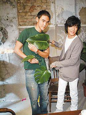 中新網(wǎng)6月19日電 因偶像劇《命中注定我愛你》暴紅的臺(tái)灣男演員阮經(jīng)天,為回報(bào)蕭敬騰曾在該劇中客串演出,前天特意留出6小時(shí)空檔,幫蕭敬騰拍新歌《奮不顧身》MV,蕭敬騰知道他將履行收視率破10要裸泳的承諾,特地探班并送2片植物,還揶揄他:“看你要遮臉還是遮下面!”阮經(jīng)天則笑答:“那要再送我1片!”