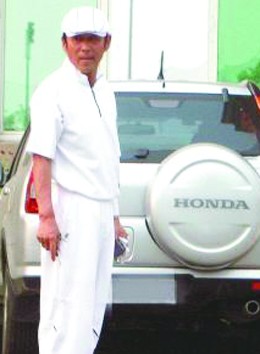 鄰居經(jīng)?吹疥惖烂魃泶┮惶籽┌椎母郀柗颉斑\(yùn)動(dòng)裝”,頭戴一頂白色的鴨舌帽,親自駕駛“路虎”來(lái)到高爾夫球場(chǎng)。