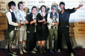 坐在金曲獎(jiǎng)臺(tái)下悶了一晚的“蘇打綠”,在倒數(shù)第4個(gè)獎(jiǎng)項(xiàng)終于拿獎(jiǎng),順利連莊“最佳樂團(tuán)獎(jiǎng)”。盡管去年已享受過這份殊榮,但大伙還是齊呼:“感謝每個(gè)肯定我們的人,再拿還是開心!”今年參加金曲,“蘇打綠”帶著精心打扮過的媽媽們“蘇打娘”走星光,粉嫩又亮眼的星媽們果真也替他們帶來好運(yùn)氣。