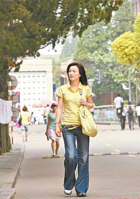張庭走在校園中,重溫當學(xué)生的感覺。