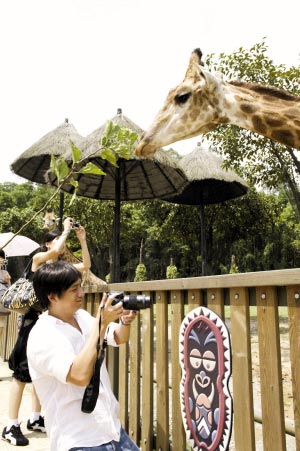 本月12日,黃磊以別克凱越旅行車的代言人和攝影發(fā)燒友的身份來(lái)到香江野生動(dòng)物園,參加由《華夏地理》雜志主辦的全球攝影大賽外拍活動(dòng)。一進(jìn)香江野生動(dòng)物園的大門,黃磊就逗起掛在樹上的兩只鷯哥,熱情地和它們打著招呼,可是鷯哥毫無(wú)反應(yīng),在數(shù)次逗弄沒有得到回應(yīng)之后,黃磊“悻悻”離去。來(lái)到長(zhǎng)頸鹿園,黃磊顯得異常忙碌,他給長(zhǎng)頸鹿拍起了寫真照———近景的,遠(yuǎn)景的,單個(gè)的,一對(duì)的,吃東西的,不吃東西的……為了更好地給長(zhǎng)頸鹿取景,這位文藝帥哥還當(dāng)眾跪在地上。