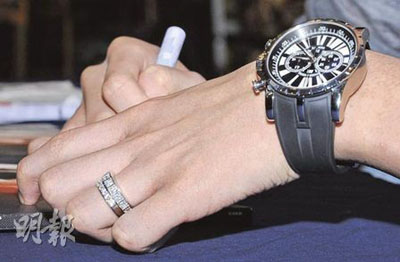 麥俊龍現(xiàn)身時仍戴著與阿嬌定情戒。