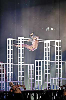 中新網(wǎng)9月1日電 郭富城前晚于澳門舉行首站的世界巡回演唱會(huì),更穿上火紅閃閃“愛的戰(zhàn)衣”新裝載歌載舞。當(dāng)他在架上表演體操環(huán)節(jié)時(shí),因絆腳險(xiǎn)墮下臺(tái),幸好自言孔武有力的他,用力支撐身體,繼續(xù)表演。