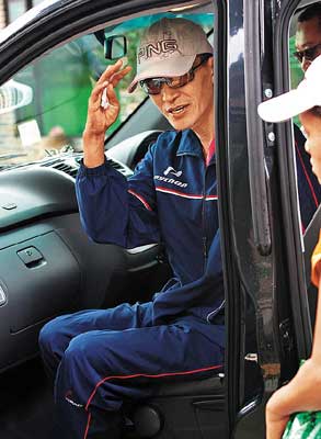 圖為6月時尹志強乘車看醫(yī)生,當時其臉龐明顯瘦削很多。