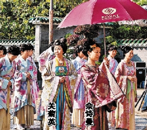 同日佘詩曼就以一姐姿態(tài)“統(tǒng)領(lǐng)”關(guān)菊英、米雪、楊怡等人拍攝古裝重頭劇《劉三好》(暫名)。巡禮片中,每逢佘詩曼、關(guān)菊英、米雪拍攝,均有一大班宮女尾隨營造氣勢,加上是女人斗爭的戲,令人聯(lián)想到有日劇《大奧》的影子。