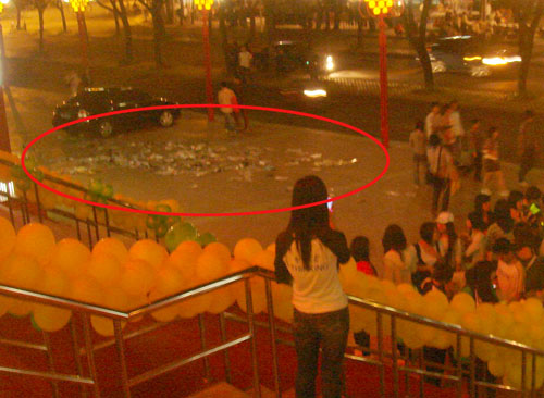 歌友會(huì)門外被撕毀一地的海報(bào)