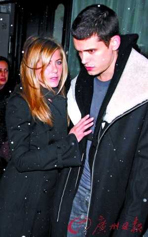 安妮斯頓與男友雪夜浪漫。