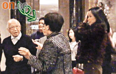 晚上十時許,梁朝偉先行步出,但發(fā)覺其座駕還未駛回酒店,于是站在停車場一角致電給司機(jī),而嘉玲則隨后照顧奶奶及一眾親友,F(xiàn)場所見,嘉玲全程攙扶奶奶,又不時搭奶奶膊頭,有說有笑,在旁的偉仔看到二人相處融洽,也不禁會心微笑。當(dāng)座駕到場后,嘉玲即護(hù)送奶奶及長輩上車離開后,隨即與偉仔登上另一輛七人車返家。