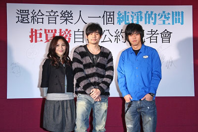 2007年,周杰倫“戳”破唱片圈“買榜”現(xiàn)象,一石激起業(yè)界千層浪。昨日,周杰倫攜手柯有倫、梁文音、豐華唱片新人組合——冰淇淋少女組等多位藝人參加“拒買榜自律公約”記者會(huì),呼吁尊重音樂(lè)、不欺騙消費(fèi)者、不買榜,還給音樂(lè)一個(gè)純凈空間。記者會(huì)上,新力音樂(lè)(sony music臺(tái)灣翻譯)、環(huán)球唱片、福茂唱片、林暐哲工作室、豐華唱片等多家唱片公司高層主管紛紛到場(chǎng),做出“不買榜”承諾。