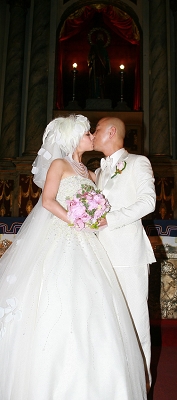 昨天,愛情長(zhǎng)跑10年的張衛(wèi)健與張茜在始建于1571年的菲律賓著名景點(diǎn)圣奧古斯丁大教堂舉行了婚禮。香港驕陽(yáng)電影公司總裁徐小明為兩人證婚,而作為兩人共同好友的李靜和戴軍則出任大婚司儀。在婚禮上張茜身穿一件拖尾純白裹胸婚紗,上半身有5000顆水晶點(diǎn)綴,造型別具一格。在婚禮中,一對(duì)新人在親友面前熱吻一分鐘,張茜還兩度喜極而泣。