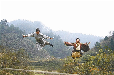 在“丐幫聚會(huì)大廳”的一場(chǎng)戲中,張無(wú)忌獨(dú)闖丐幫,一人力敵丐幫數(shù)名高手。這場(chǎng)戲要求鄧超完成一整套武打動(dòng)作并要一氣呵成將圍在他身邊的高手們打翻在地。為了拍好這場(chǎng)戲,鄧超向劇組中的武行師傅們討教了不少武打秘訣。