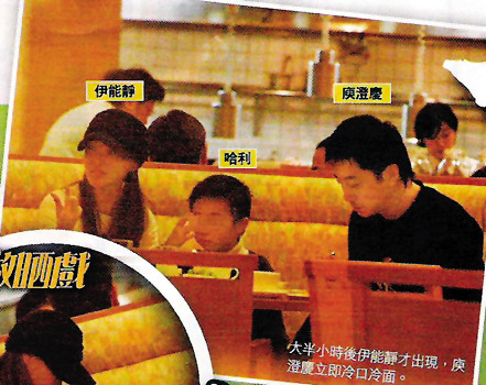 庾澄慶和伊能靜于新春期間帶上7歲的兒子哈利(庾翰睿)到北海道旅游。根據(jù)最新一期香港雜志報(bào)道,六日的旅程里伊能靜狂打“親情牌”,希望與丈夫“箍煲(復(fù)合)”,但庾澄慶冷漠對待,一有機(jī)會,他便離開老婆留在酒店休息。