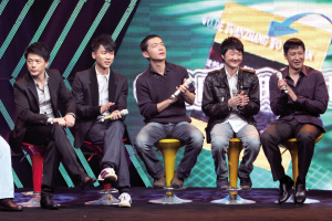 由康洪雷執(zhí)導(dǎo)、《士兵突擊》原班人馬打造的新劇《我的團長我的團》將于3月2日在江蘇衛(wèi)視進行全國首播。昨日,該劇在南京舉行首播式,康洪雷帶著段奕宏、邢佳棟、張國強、劉威葳等演員集體亮相。面對近百家媒體的追訪,康洪雷首次坦露了該劇拍攝時遭遇事故時的慘狀,還給大家揭秘道:“會看哭所有觀眾的,《我的團》全是英雄,最后跟日本人拼得只剩下兩個人了!闭f到動情處,現(xiàn)場男演員流下了眼淚。串場的魔術(shù)紅人劉謙,則表演了三個小魔術(shù),輕松賺走20萬。