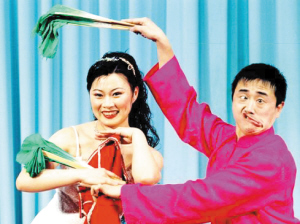 作為趙本山弟子中唯一一個從小學(xué)習(xí)二人轉(zhuǎn)的專業(yè)演員,閆光明不僅嗓子好、武功好,戲路也寬,在“首屆趙本山杯二人轉(zhuǎn)大獎賽”中曾獲表演銀獎。閆光明非?炭啵m然年齡不小了,但現(xiàn)在還是遼寧大學(xué)本山藝術(shù)學(xué)院民族藝術(shù)表演專業(yè)的大四學(xué)生。去年的全國大學(xué)生藝術(shù)節(jié)上,閆光明和妻子趙海燕以一段新編二人轉(zhuǎn)《梁山伯與祝英臺》獲得一等獎。能有今天的成績,閆光明自己也“沒想到”:“我生在二人轉(zhuǎn)世家,能有今天的成績說明這么多年的努力沒白費!彼膊煌兄x師傅趙本山,“師傅讓二人轉(zhuǎn)越來越紅火,我得繼續(xù)努力,把我熱愛的民間藝術(shù)發(fā)揚光大。”舞臺上擅長模仿趙本山的閆光明說,“我們對天津觀眾很熟悉,因為天津有劉老根大舞臺,我認(rèn)識了很多天津朋友。這次來天津演出,希望大家一樣支持我!