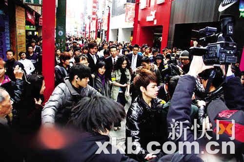 由于大批圍觀人群逼爆現(xiàn)場,所以大會除了用鐵欄桿隔出3米的距離讓阿嬌受訪,還出動十名保安及三十多位工作人員“護嬌”,更筑起三道人墻前后將阿嬌包圍。阿嬌不斷強調(diào)臺灣的Fans讓她備感溫暖,并向Fans溫情“喊話”,感謝他們的不離不棄,“希望大家逆境自強、永不妥協(xié),困難時不要放棄希望。你們(歌迷)的一舉一動都給我很大力量,我唯一可以回報的就是堅強面對。”隨后她在巨型布景板上寫下“堅強、努力”兩詞。阿嬌說,兩個月前她曾悄悄和阿Sa到臺灣度假,還透露早些年因有人挑撥離間,導(dǎo)致自己和阿Sa沒那么親近,兩人一起來臺灣后,心結(jié)全消。
