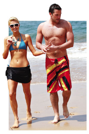 希爾頓的風(fēng)流史全球聞名,身家30億英鎊,身邊的男伴也頻頻更換。沒(méi)有想到,28歲的“芭比娃娃”的真命天子就這樣出現(xiàn)了:比她小5歲的美國(guó)職棒大聯(lián)盟球員道格·雷恩哈特拜倒在她的石榴裙下。
