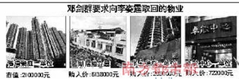 另外,有報(bào)道指,鄧劍群在向法院交待這些年交與李姿霆的多處物業(yè)時(shí)稱,當(dāng)初以李姿霆的名義購買物業(yè)只是為怕兩人戀情會因他登記成為業(yè)主而被揭發(fā),但并沒有打算將物業(yè)以饋贈形式轉(zhuǎn)讓給李姿霆,如關(guān)系終結(jié),她持有的業(yè)權(quán)將悉數(shù)歸還給鄧劍群。
