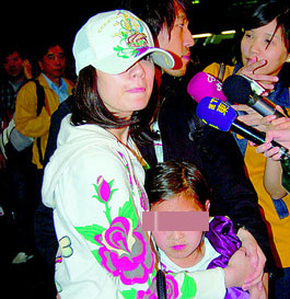 賈靜雯出現(xiàn)后,等候多時的記者立刻蜂擁而上,這時從接機(jī)人群沖出一位年約七、八歲小女孩,奔向賈靜雯懷抱,大家以為是梧桐妹,立刻上前圍堵爭拍,賈靜雯用手護(hù)住女孩面龐,擔(dān)心她被閃光燈嚇到。賈靜雯說,這是一個親戚的女兒,不是梧桐妹,何時能見到女兒,還要等孫志浩的電話。