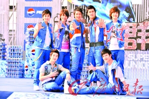 昨日,人氣組合Super Junior-M在中國香港出席代言百事簽約儀式(見上圖),在形式上搞搞新意思坐著推土機(jī)出場(chǎng),散發(fā)著陽光氣息,身為Super Junior-M隊(duì)長的韓庚更表示,希望可以借現(xiàn)在專輯發(fā)布、人氣上升的時(shí)機(jī),向影視方面進(jìn)軍。