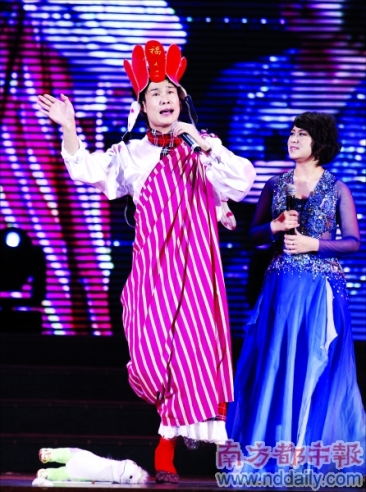 “男主角”小沈陽一身跑偏的蘇格蘭裙上場,瞇瞇一笑就贏得了最熱烈的掌聲。上來一句著實不怎么地道的粵語問候“大家好”,很多人硬是沒聽出來他在說什么。依然是調(diào)侃中國足球,依然是唱《大!贰ⅰ段沂切∩蜿枴,依然是《大話西游》的段子,依然是把鞋踢上了“房梁”,依然是抱著小花包啃蘋果———都是些網(wǎng)上流傳的段子,但絲毫不影響臺下觀眾興高采烈加捧腹大笑,連小沈陽自己都說現(xiàn)場看就是不一樣。很多人印象最深刻的是廣州也出了個上帝,小沈陽說日本球迷見到上帝嘰里呱啦說了一堆日語:“上帝一個大嘴巴子扇過去:‘說點中國話!’上帝是廣州人……”而當(dāng)小沈陽扮演的唐僧拉著迷你版玩具白龍馬上臺時,他如此解釋白龍馬的小個頭:“喝三鹿喝的,喝三鹿奶粉,后媽的選擇!”