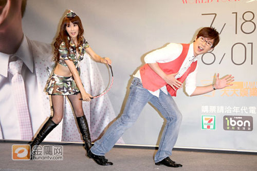 對(duì)于即將來(lái)到的世界巡回演唱會(huì),品冠的心情既期待又怕受傷害,一方面期待在演唱會(huì)中與歌迷的互動(dòng),另一方面則是擔(dān)心不景氣沖擊了票房,平時(shí)喜歡騎車運(yùn)動(dòng)的品冠,在昨天記者會(huì)特別騎上了他收藏許久的英國(guó)經(jīng)典品牌Brompton手工小折,沖破主辦單位準(zhǔn)備的“沖刺門”,期待沖出好票房,并沖破自己的尺度給歌迷大大的驚喜。