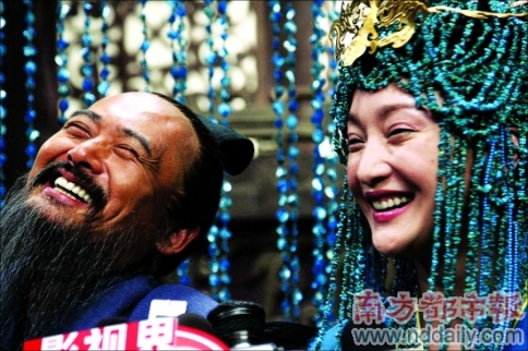 在當晚拍攝的戲中,史籍中記載“艷而淫”的南子面帶嬉笑地圍著孔子轉(zhuǎn)圈,在孔子面前跪下。