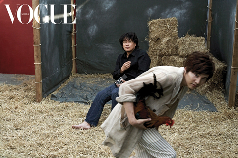 中新網(wǎng)5月27日電 近日,電影《母親》的導(dǎo)演奉俊昊和男主角元彬一同站在了鏡頭前。奉俊昊和元彬一起為時(shí)尚雜志《VOGUE》拍攝了畫(huà)報(bào)。