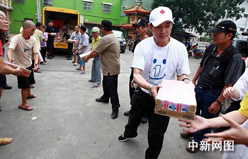 李連杰于8月14日中午抵臺,一下飛機便與臺灣紅十字組織會合,晚上代表壹基金參加“88水災”賑災晚會。第二天他與臺灣紅十字組織人員來到位于高雄縣旗山鎮(zhèn)的災民收容所,看望因災難流離失所的災民,與受災情困擾的高山族小朋友,一起合唱“我們都是一家人”,同苦同難,情深意長。之后,沒有停歇,與救援人員一起將準備好的物資,送進高雄縣六龜鄉(xiāng)的村落,并輾轉(zhuǎn)鳳山市,參與當?shù)鼐仍ぷ鳌?/p>