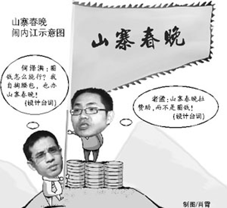 在何澤洪看來(lái),老孟的炒作無(wú)疑擴(kuò)大了山寨春晚的知名度,這也成了老孟與贊助商談判的資本。