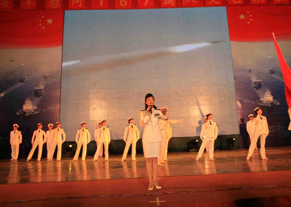 中新網(wǎng)8月22日電 8月21日晚,宋祖英、呂繼宏等多位名星,齊聚南海艦隊某軍港,為剛剛凱旋的海軍第二批護航編隊官兵獻上了一臺精彩的演出。