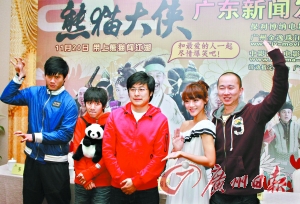 結(jié)束了北京首映禮之后,11月18日,《熊貓大俠》導(dǎo)演王岳倫帶著演員后舍男生、鄧家佳、李曉川抵達(dá)廣州宣傳。