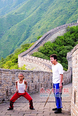 由成龍和威爾·史密斯的兒子賈登·史密斯(JadenSmith)主演的《功夫夢》(The Karate Kids)近日曝光了幾張官方劇照,畫面所見,成龍在長城上訓練賈登·史密斯,小子架勢十足。該片由中影集團、索尼·哥倫比亞和威爾·史密斯(Will Smith)旗下的Overbrook娛樂公司聯(lián)合投資拍攝,將于明年6月11日在北美公映,中國也將同步引進。
