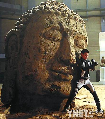 雖然已事先備下了保護措設,但在推動佛像的過程中,千余斤的巨物突然失控,瞬間重重砸下,將劉德華劈頭蓋臉整個壓在下面。現(xiàn)場的工作人員嚇得忙一擁而上將劉德華攙扶起來,不料卻又導致畫面穿幫而無法使用。劉德華此時雖然一身疼痛,被重壓折磨得喘不過氣來,卻毫無怨言,恢復過來后毅然再次親自上陣。為了達到最震撼的視覺效果,每一次拍完后,劉德華還會不顧疼痛,跑到監(jiān)視器前面回看拍攝畫面,有不甚滿意之處就要求重拍。每一次都險象環(huán)生,劉德華卻鎮(zhèn)定地勸慰工作人員不要緊張,他的敬業(yè)精神令在場的工作人員敬佩感動不已。