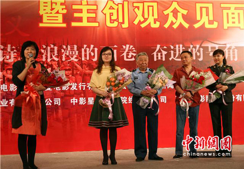 中新網(wǎng)5月14日電 繼大型音樂舞蹈史詩《復興之路》在人民大會堂和國家大劇院上演百場后,《復興之路》的電影版將于5月15日在全國上映。今天,電影版《復興之路》在北京青年宮電影城舉行了北京首映典禮!稄团d之路》舞臺版文學部主任閻肅、電影版導演王一巖、歌唱演員王麗達、王慶爽等主創(chuàng)與現(xiàn)場觀眾進行了親切交流。活動中,閻肅妙語連珠,開玩笑爆料自己險些就成為了《復興之路》的朗誦;主唱王麗達也以特別的形式演唱了歌曲《學習雷鋒好榜樣》。