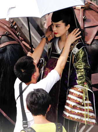 陳凱歌新片《趙氏孤兒》正在寧波趕拍,范冰冰的孕婦造型日前浮出水面。當(dāng)天正在拍攝一場(chǎng)趙朔攜莊姬進(jìn)城見(jiàn)晉王的戲份。范冰冰扮演的莊姬華服綾羅地端坐在馬車內(nèi),黑紗遮面,被趙文卓緊緊牽著。莊姬是“趙氏孤兒”趙武的生母,也是片中分量最重的女性角色。導(dǎo)演一喊卡,立即有三四個(gè)助手沖上去攙扶范冰冰下車,范冰冰以腹部高聳的造型亮相。雖然范冰冰早前在《蘋(píng)果》中也扮演過(guò)孕婦角色,不過(guò)像這樣夸張的“十月臨盆”的大肚造型還是比較罕見(jiàn)的。(辛文)