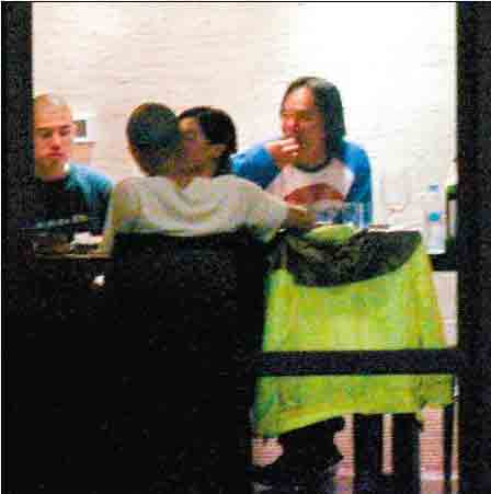 吃到一半,幾杯黃湯落肚,張柏芝立即發(fā)揮其豪放本色,整個(gè)人壓在謝霆鋒身上,又抱又吻的,完全無(wú)視于他人的存在。九點(diǎn)多眾人酒足飯飽離開,一路上談到刺青,張柏芝眉飛色舞,更斗膽扯去黑色低腰牛仔褲,將腰間的刺青展露于工作人員面前,一旁的謝霆鋒似乎見怪不怪,最后摟著張柏芝回酒店。