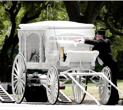 杰克遜的遺體葬禮當(dāng)天將用一輛充滿童話色彩的白雪公主式馬車運抵葬禮地點,而不是一般葬禮將會使用的黑色車輛。