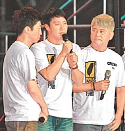 昨晚會,劉德華從頭到晚穿梭在舞臺上,先與鄭秀文合唱〈喝采〉,再與任賢齊演唱臺語歌〈天下第一等〉鼓勵臺灣,稍晚也與譚詠麟、陳百祥、溫拿五虎演唱〈朋友〉,日前他自費來臺賑災(zāi),連趕兩臺,回港后又與曾志偉合辦“88水災(zāi)關(guān)愛行動”,為臺灣出錢出力。