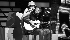 在巡演起點(diǎn)站上海站中曾經(jīng)發(fā)誓說“以后不唱《獅子座》”的曾軼可,昨晚卻又唱了這首自己的“成名曲目”。評委高曉松上臺為其伴奏,兩人合作了《我還能孩子多久》,盡顯師生情誼。