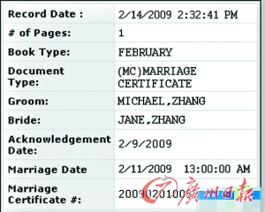 有媒體爆料,在美國新澤西州網(wǎng)站發(fā)布的結(jié)婚登記信息顯示,張靚穎已與英文名“MICHAEL ZHANG”的男子注冊結(jié)婚。這位神秘男友邁克的真實身份,流傳了兩個版本。一是張靚穎合作多年的經(jīng)紀(jì)人馮科,但馮科的真實英文名“MICHAEL FENG”,與登記的信息有一些出入。二是這位“MICHAEL ZHANG”是位富二代,中文名張海濤自小隨做服裝貿(mào)易生意的父母移居美國,家族身家數(shù)十億,也是精通20多種樂器的“音樂狂才”。有人爆是在某國際音樂節(jié)上,經(jīng)譚盾介紹,張靚穎認(rèn)識了這位富二代,而該男友更暗地幫助張靚穎主攻虎年央視春晚。兩人更在今年情人節(jié)在美國新澤西州登記結(jié)婚。