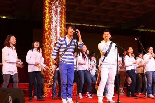 為歡迎美國總統(tǒng)奧巴馬訪華,前晚一場特別的慶;顒釉谌嗣翊髸门e行,中國文藝界明星紛紛登臺獻(xiàn)藝,羽泉作為流行樂壇的唯一代表壓軸獻(xiàn)唱歌曲。