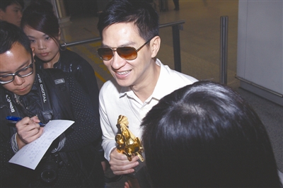 在臺(tái)灣金馬獎(jiǎng)奪得影帝的張家輝前日凱旋返港,張家輝表示,出發(fā)去臺(tái)灣前以為自己曾獲得過(guò)影帝,不會(huì)再緊張,但到頒獎(jiǎng)禮開(kāi)始時(shí),心跳便開(kāi)始加速,好似心臟病發(fā)一樣。他還透露,得獎(jiǎng)后即收到好友劉青云、黃秋生與吳君如的祝賀,但收到女兒的投訴。他表示,太太關(guān)詠荷收到他封帝消息后,即尖叫起來(lái),女兒投訴給母親吵醒了