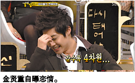 韓國人氣組合SS501成員金賢重,在前晚播出的電視節(jié)目中自曝曾與一名女藝人交往,這一話題迅速成為人們關(guān)注的焦點(diǎn)。