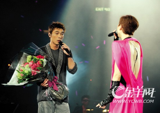 當晚,鄭秀文先是在臺上表示:“今晚請了一個很特別的人來做我嘉賓,讓我先喝口水,因為這首歌已經(jīng)N年沒唱過了!”之后便響起她與許志安的經(jīng)典合唱歌《其實你心里有沒有我》前奏,全場觀眾立即瘋狂尖叫。此時許志安拿著一束桃紅色玫瑰花上臺,場面浪漫感人。當唱到最后一句“其實你心里有沒有我”時,鄭秀文有點害羞地避開許志安的眼神。