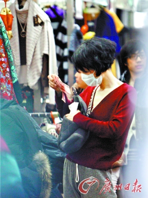當天下午兩時半,記者在東三環(huán)附近某服裝市場外閑逛,突然發(fā)現(xiàn)王菲的座駕正在停車場尋找停車位。沒多久,王菲穿著一件長長的羽絨服、戴著白口罩從車后座上走了下來。在等司機停好車后,王菲一行進入服裝市場一層,一進門便奔著買民族服飾的區(qū)域而去。最后王菲看中了一件帶盤扣的花團圖案薄大衣。