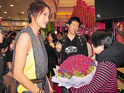 梁詠琪、鄭中基及鄧麗欣于前晚元宵佳節(jié)為新片做宣傳,梁詠琪更是意外獲贈99朵玫瑰,更自爆認(rèn)識這名癡情男,因?yàn)閷Ψ皆啻吻蠡椤?/p>